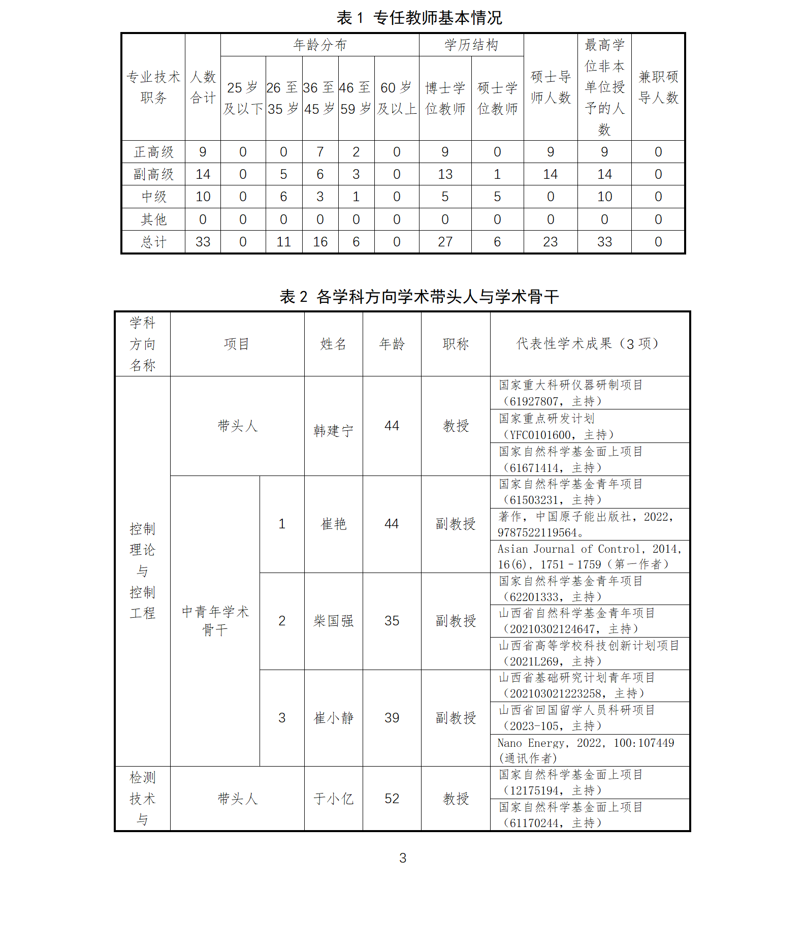 本学科团队队伍结构合理,整体素质较高,综合实力较强,本学科现有固定人员33人,其中教授9人,副教授14人;具有博士学位27人,具有海外经历教师10人;博士生导师2人,硕士生导师23人,45岁以下中青年教师27人,占总人数的81.8%。专任教师队伍知识结构、专业技术职务结构、学历结构以及年龄结构合理,形成了以学术带头人为主、优秀中青年教师为骨干的教师梯队,充满发展活力与潜力。