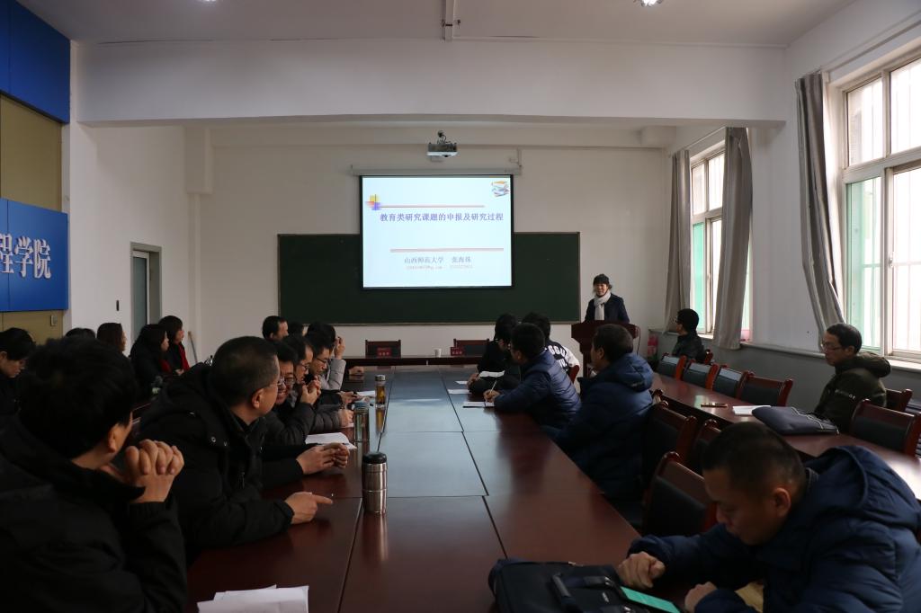 报告会中,张海珠教授就教育类研究课题的申报及研究过程,做出了详细的介绍,她从教育研究类课题的来源和申报两方面进行了细致分析。她说,课题的选取要与自己的日常工作联系起来,选择适合自己的研究课题;课题申报书的撰写在形式上要格式规范、层次清晰、排版整齐、装订美观,内涵上要研究目标明确、内容充实、方法科学、过程规范、方案可行、思路清晰。整个报告会内容丰富,过程深入浅出。