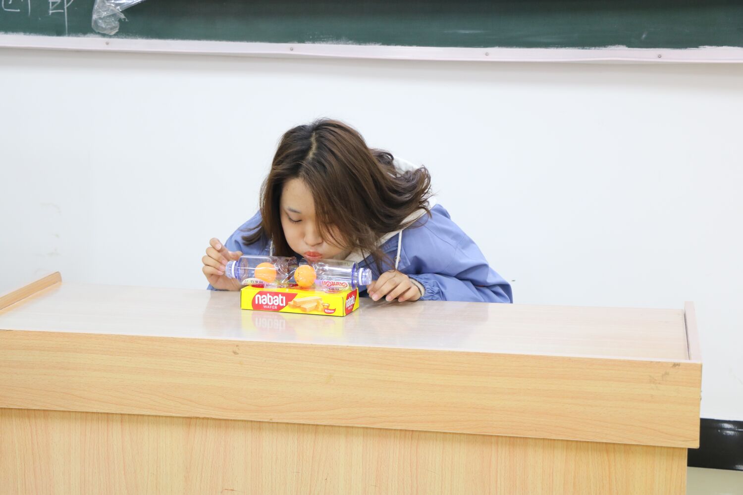 本次活动共吸引141名同学参加。活动中,同学们依次上台介绍自己的手工制作的教具。同学们运用共振现象、光的衍射、小孔成像等物理原理,利用身边的普通材料,结合中学物理知识,制作出一个又一个别出心裁的创意教具。展示过程中,同学们绘声绘色地介绍了制作过程、物理原理和创意来源,并具体演示了教具的操作步骤。评委老师还对每位选手进行了细致点评,对同学们的创新的思想和巧妙的动手能力给予赞扬,并指出同学们创新教具的优点和存在的问题,提出了相应改进方法。