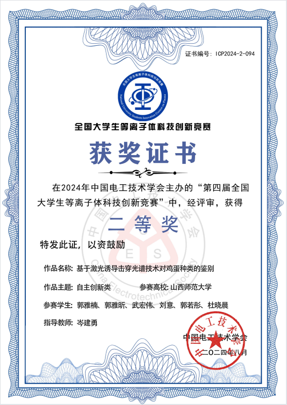 8月9日-11日,由中国电工技术学会主办,西安交通大学承办的第四届全国老员工等离子体科技创新竞赛全国总决赛暨等离子体学科交叉论坛在陕西省西安市中国西部科技创新港成功举办。公司首次参加此项赛事,并荣获国家级二等奖。