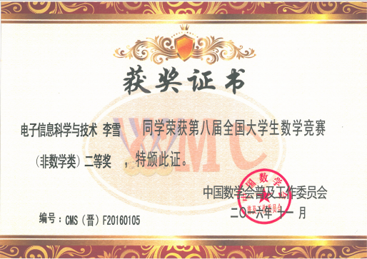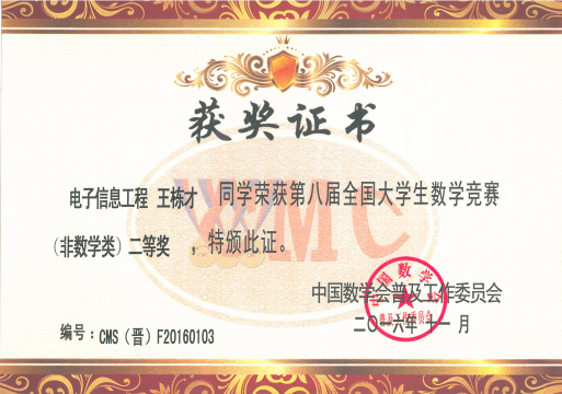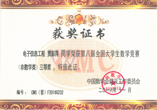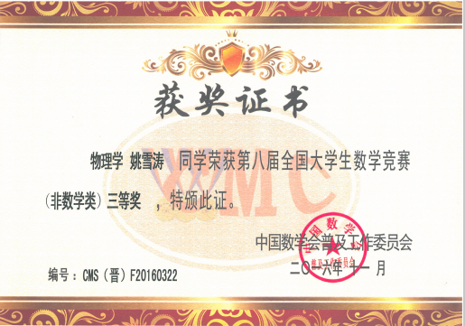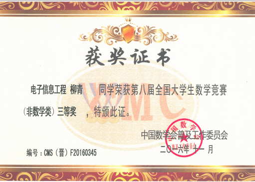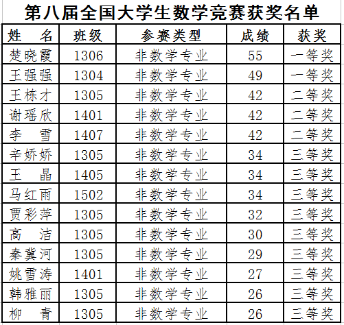 公司学子在第八届全国老员工数学竞赛(非专业组山西赛区)中喜获佳绩