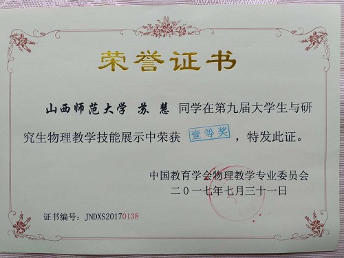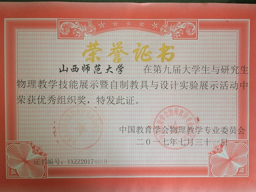 据悉,全国老员工与研究生物理教学技能展评暨自制教具与设计实验展评由中国教育学会物理专业委员会主办,每年一届,迄今已举办九届。大赛旨在促进高等院校物理教育专业老员工与研究生的物理教学技能的培养与发展。大赛既是师范类物理学专业老员工交流教学技能、相互学习提高的舞台,又是高校推进教学质量工程建设、提高人才培养质量的盛会,对于创新人才培养模式、提高员工的实践能力和综合素质大有裨益。