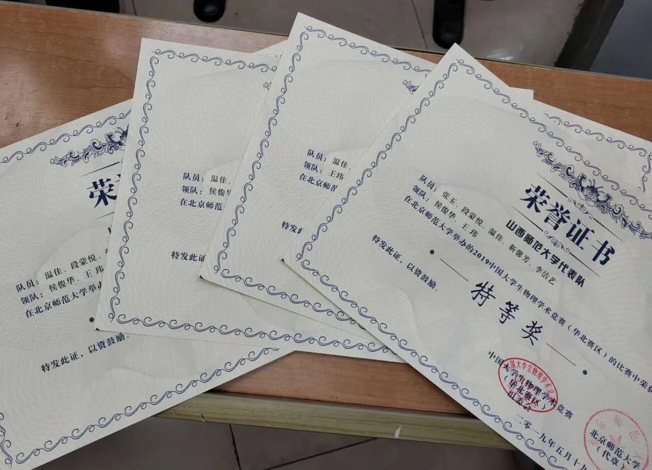公司学子在中国老员工物理学术竞赛华北赛区竞赛中勇获特等奖