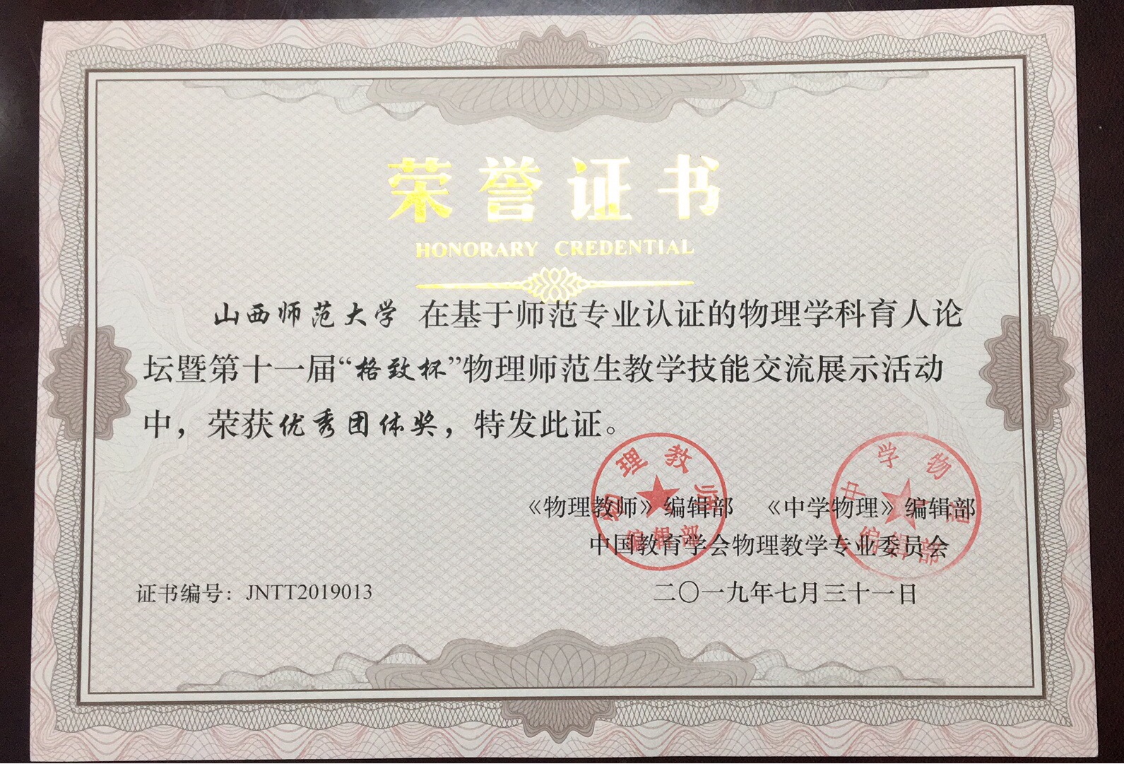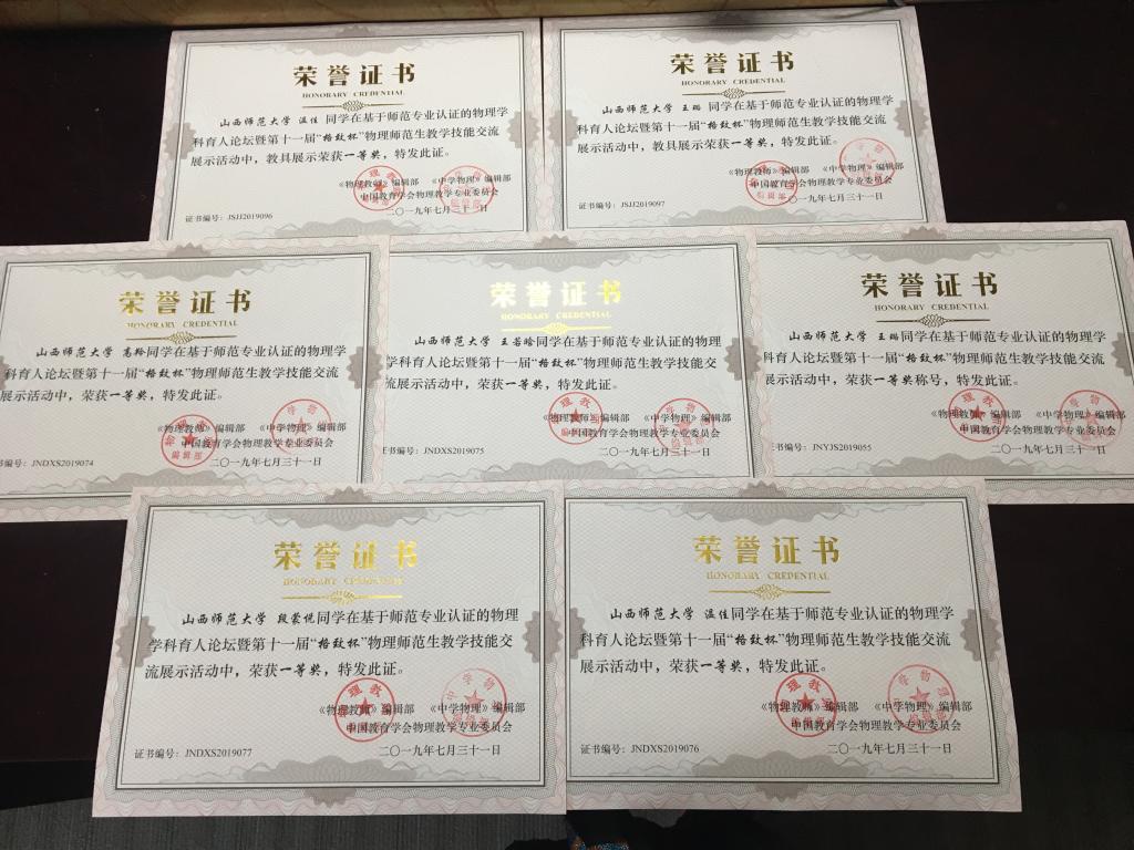 2019年7月29日—31日,由中国教育学会物理教学专业委员会主管的、由《物理教师》编辑部与《中学物理》编辑部联合主办的基于师范专业认证的物理学科育人论坛暨第十一届“格致杯”物理师范生教学技能交流展示活动,在阜阳师范大学举行。共有来自北京师范大学、东北师范大学、华中师范大学、华南师范大学等61所高校的484名员工参与。公司8名本科生、3名研究生在公司党委副书记王玮,指导教师张中才、潘俊星、穆林平、岳文慧、卫永霞的带领下参加了比赛。