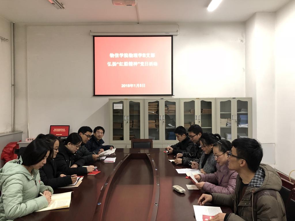 为了更好的践行“红船精神”,2018年1月5日晚七点,公司物理学B支部在04106会议室召开弘扬“红船精神”党日活动。会议由支部书记徐小虎主持。