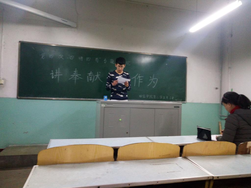 首先,罗忠宝同志就“四讲四有”中的“讲奉献,有作为”进行了讲演。“讲奉献,有作为,”就是要把人民利益放在第一位,要脚踏实地地干工作,一心一意为人民服务。作为一名即将步入社会的当代党员老员工,要保持坚定的理想信念,纯洁的道德操守,立足自身实际,不断提升自身水平,精心谋事,潜心干事,专心做事,用心成事。