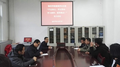 物理学A支部举办了“不忘初心、牢记使命、学习榜样、爱岗敬业”主题党日