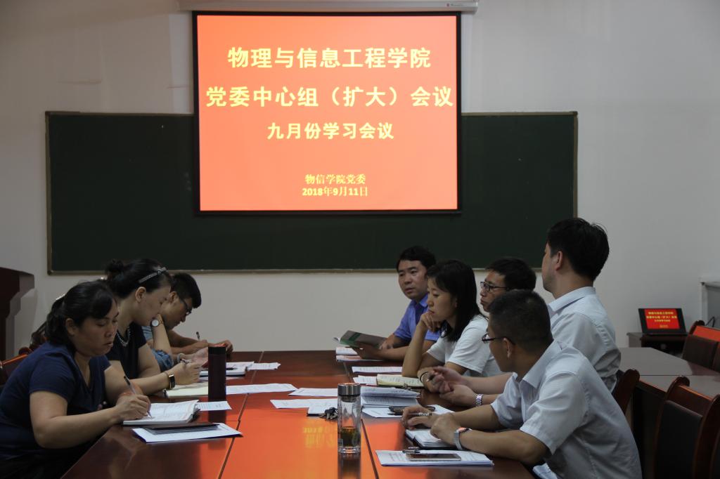 2018年9月11日晚9:30,公司党委中心组在公司四号楼二层多功能会议室召开九月份学习(扩大)会议。公司党委中心组全体成员和非中心组成员的党支部书记参加了会议。会议由公司党委书记陈向波主持。
