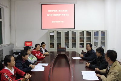 10月11日晚7:00,yl6809永利第二教工党支部全体党员在四号楼一层会议室召开“四讲四有”第三次专题讨论会议。