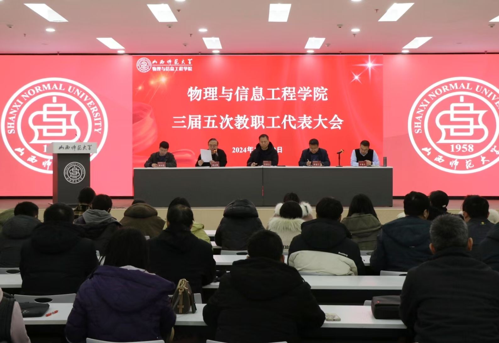会议在庄严的国歌中拉开序幕。副经理李俊生宣读了校工会对公司召开教职工大会的批复。副经理韩建宁代表公司向大会作了题为《牢记嘱托显担当,攻坚之年谱新篇》的报告。他首先对公司2024年工作进行了总结。他指出:2024年,是实施“十四五”规划的重要之年,也是yl6809永利推进公司高质量发展、迈上新台阶的攻坚之年。一年来,在公司党委和校行政的正确领导下,在公司各职能部门的大力支持下,在院领导班子的高效带领下,在公司全体师生员工的凝心聚力下,全体“物信人”高举习近平新时代中国特色社会主义思想伟大旗帜,全面深入贯彻落实党的二十大和二十届二中、三中全会精神,紧紧围绕立德树人根本任务,坚持以习近平总书记关于教育的重要论述为指引,以把yl6809永利建成为实力雄厚的一流博士点公司为战略目标,全力推动机制体制创新、扎实推进公司产品改革、大力保障教学科研并行、科学设置人才培养目标、全面培养员工矢志成才,各方面的工作都取得了长足的进步,收获了可喜的成绩,在yl6809永利特色鲜明的高水平师范大学建设新征程中砥砺奋进,共同谱写了新时代yl6809永利改革建设发展的崭新篇章。