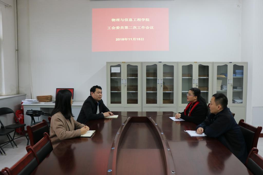 2018年11月15日下午3:00,公司工会委员会在四号楼一层会议室召开2018年第二次工作会议,全体工会委员参加了会议。会议由公司党委书记、院工会主席陈向波主持。