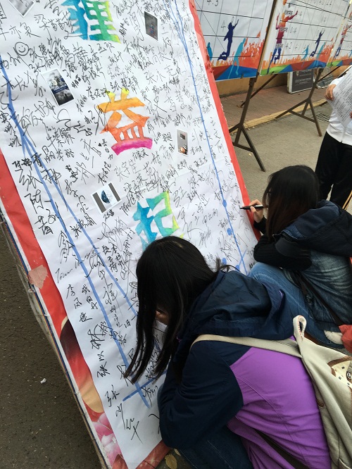 前期活动与11月10日在校医院门口开展。活动过程中,公司志愿者们首先通过播放视频和发放宣传单向同学们讲解了雾霾天气的产生原因、危害、生活防霾小贴士等相关知识,发放防霾宣传单,并耐心地解同学们有关雾霾预防的问题;活动通过邀请参与者在防霾条宣传展板上签名的形式,使更多的同学参与到防霾宣传活动中来,对防霾知识有了进一步的了解和学习。此外,公司志愿者们还免费为参与活动的同学发放贴有方面纪念标志的一次性口罩,呼吁大家在学习生活之中将灰尘“拒之门口”,活动以其新颖的形式和志愿者们热心的讲解吸引了全校众多师生参与其中。