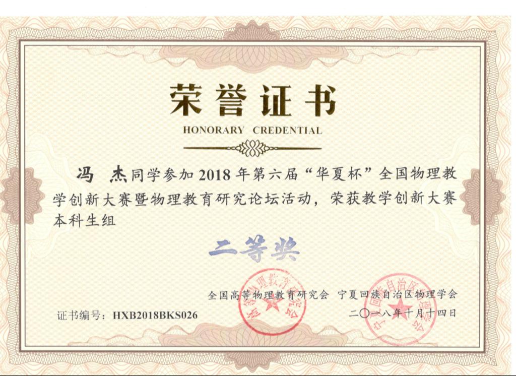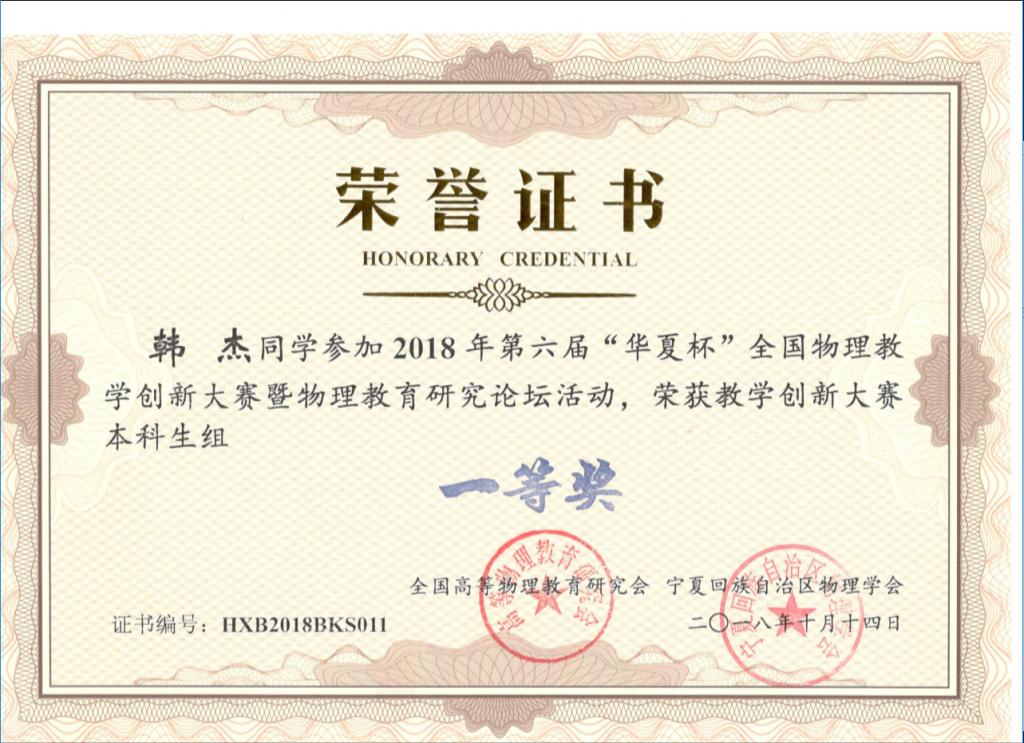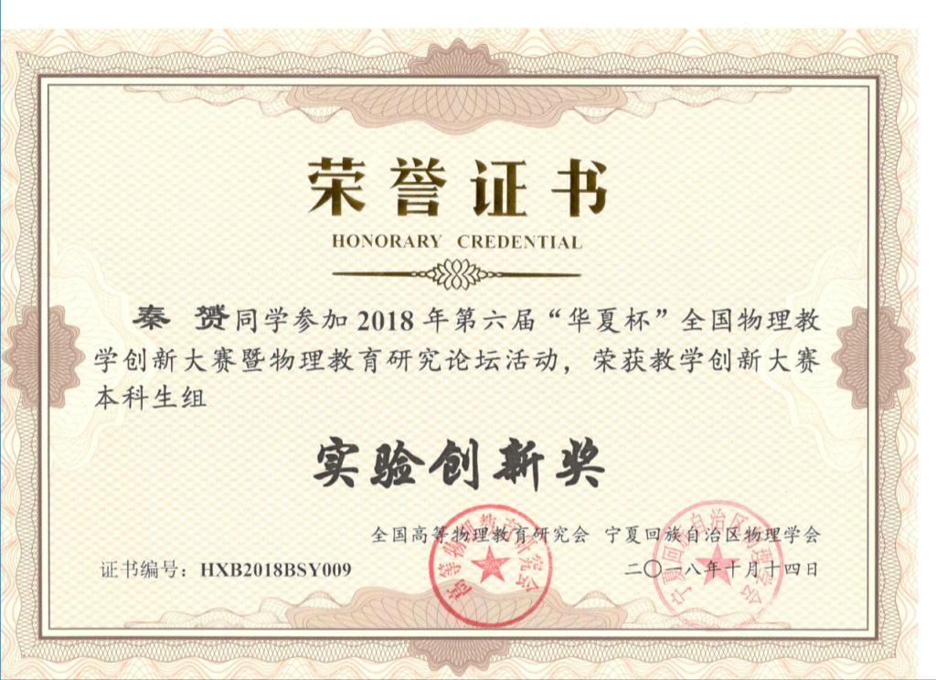 2018年10月13日—14日,由全国高等物理教育研究会主办的第六届“华夏杯”全国物理教学创新大赛暨物理教育研究论坛在宁夏大学举行,共有来自北师大、华东师大、东北师大、西南大学等全国57所高校的本科生、研究生和来自28个省市区的51所中学物理教师共467人参加了本次赛事。公司3名本科生在公司党委副书记王玮、院团委副书记岳文慧和张中才老师的带领下参加了本次赛事,本次比赛以王玮副书记为领队、张中才老师为总指导。在本次比赛中,公司选手精心准备、发挥出色,最终荣获国家级教学一等奖1项、二等奖2项,国家级实验创新奖2项,张中才等3位教师荣获“优秀指导教师奖”,彰显了公司学子扎实的教学基本功和突出的创新能力,为公司公司争得了荣誉,也为即将到来的本科教学工作审核评估献上了一份厚礼。
