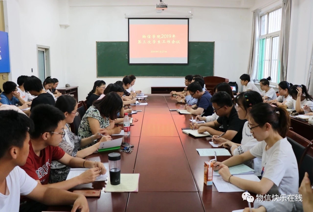 2019年5月27日晚上7:00,公司在四号楼二层多功能会议室召开2019年第三次员工工作会议。院学工组全体成员、各班班长、团支书参加了会议。会议由公司党委副书记王玮主持。
