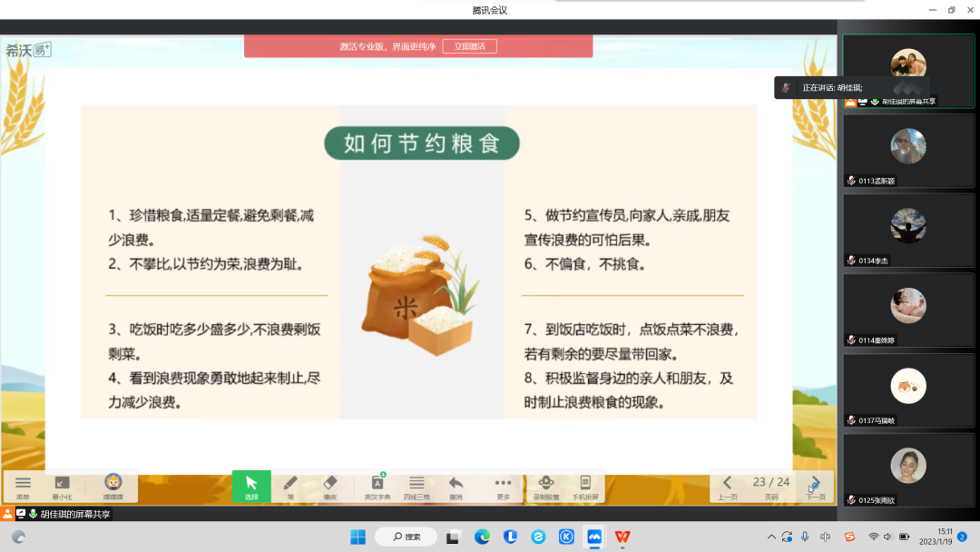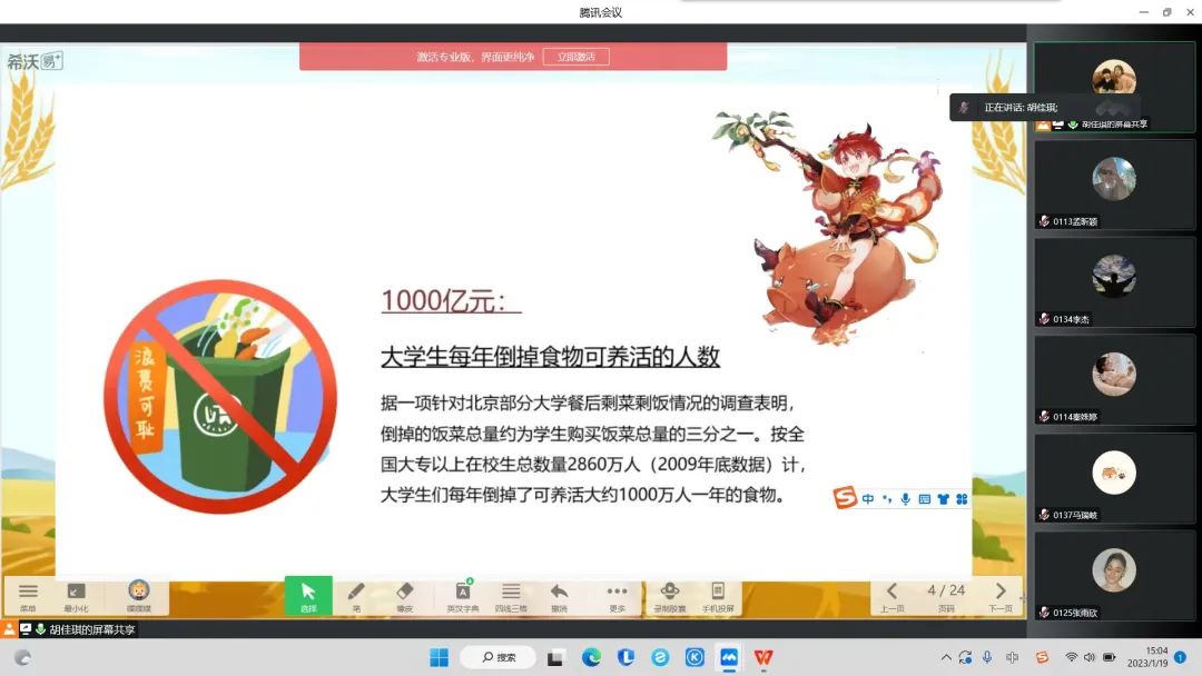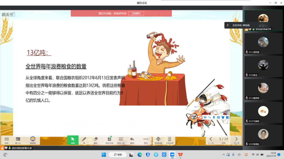 为了引导员工树立“节约光荣,浪费可耻”的意识,1月19日晚,公司2201班通过线上形式举行了“厉行勤俭节约,反对餐饮浪费”主题班会。此次班会由班长胡佳琪主持。