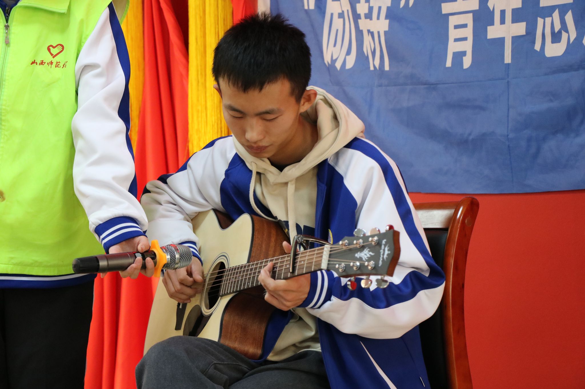 活动开始,志愿者们首先为老人们讲解如何使用智能手机,每位同学都细心地帮助各位老人了解关于智能手机的功能,并进行了一对一的指导。然后,同学们热情饱满地上台为老人们表演节目,并带领老人们一起做了养生操,为老人们带来欢乐的同时,也拉近了彼此之间的距离。随后,同学们和老人们一同进行了趣味小游戏,全场洋溢着大家的欢声笑语。最后,活动在一首合唱歌曲《我和我的祖国》中落下帷幕。