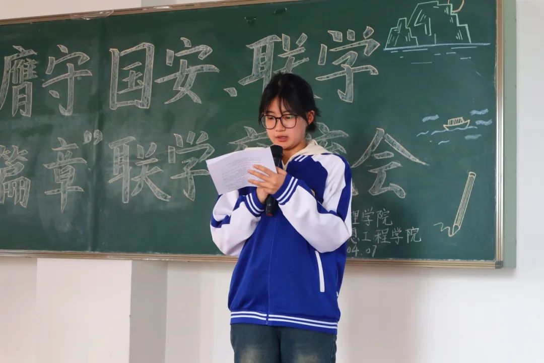 会上,两院青马班团支书分别针对“总体国家安全观”“老员工眼里的国家安全”进行主题领学,立足员工视角,以真实、生动的案例为切入点,诠释了国家安全观的内涵和价值,阐述了老员工在维护国家安全,尤其是信息文化安全、网络安全方面应尽的具体义务和责任。强调当代老员工应时刻保持清醒头脑,自觉践行国家安全观,共筑国家安全防线,做挺膺担当的时代新人。随后,两院青马班优秀学员分别进行主题宣讲。他们围绕总体国家安全观和国家安全领域等主题,呼吁同学们筑牢安全防线,争做国家安全的“宣传者”“践行者”和“守护者”。