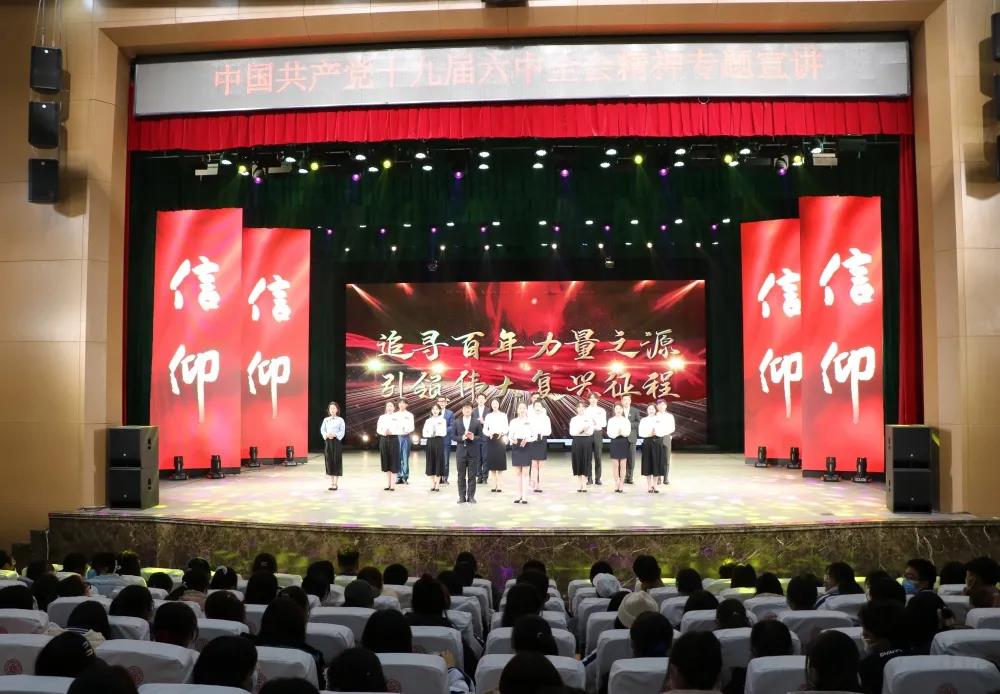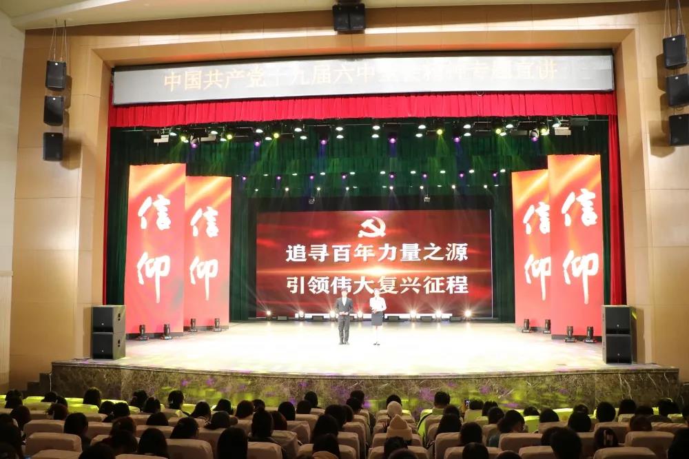 为进一步加强同学们对党的十九届六中全会的认识,深刻感悟党百年奋斗的历史伟力,11月27日,公司组织员工在北区艺术活动中心参加了党的十九届六中全会精神宣讲活动。