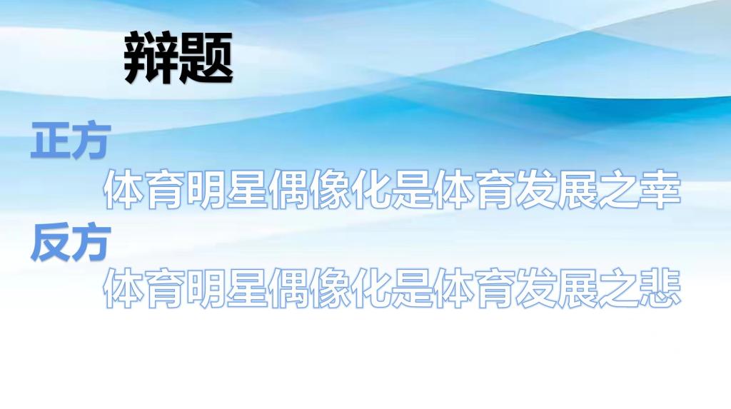 作为一名辩手,此次关于“体育明星偶像化是体育发展之幸还是体育发展之悲”的辩论赛让我收获颇多,锻炼了思维灵活程度,提高了我的语言表达能力,也让我对体育精神有了深入地认识。