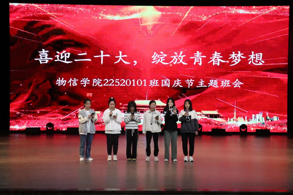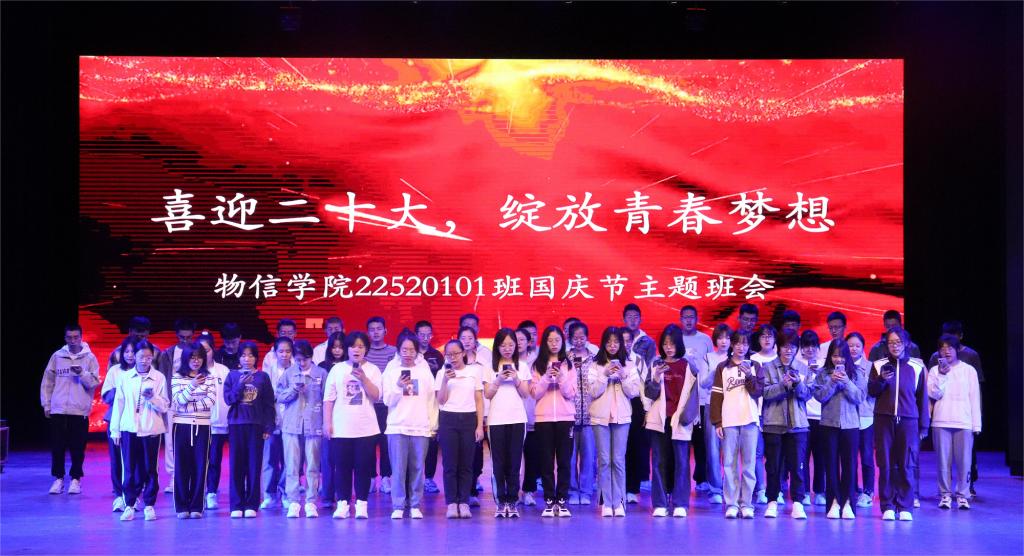 10月1日晚,公司2201班在北区文化艺术活动中心开展“喜迎二十大,绽放青春梦想”主题班会暨班级交流会。班助韩攀栩以及2201全体同学参加了本次班会,辅导员颜志刚出席活动。会议由副团支书宋子垚主持。