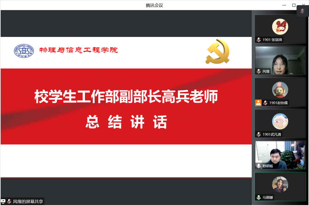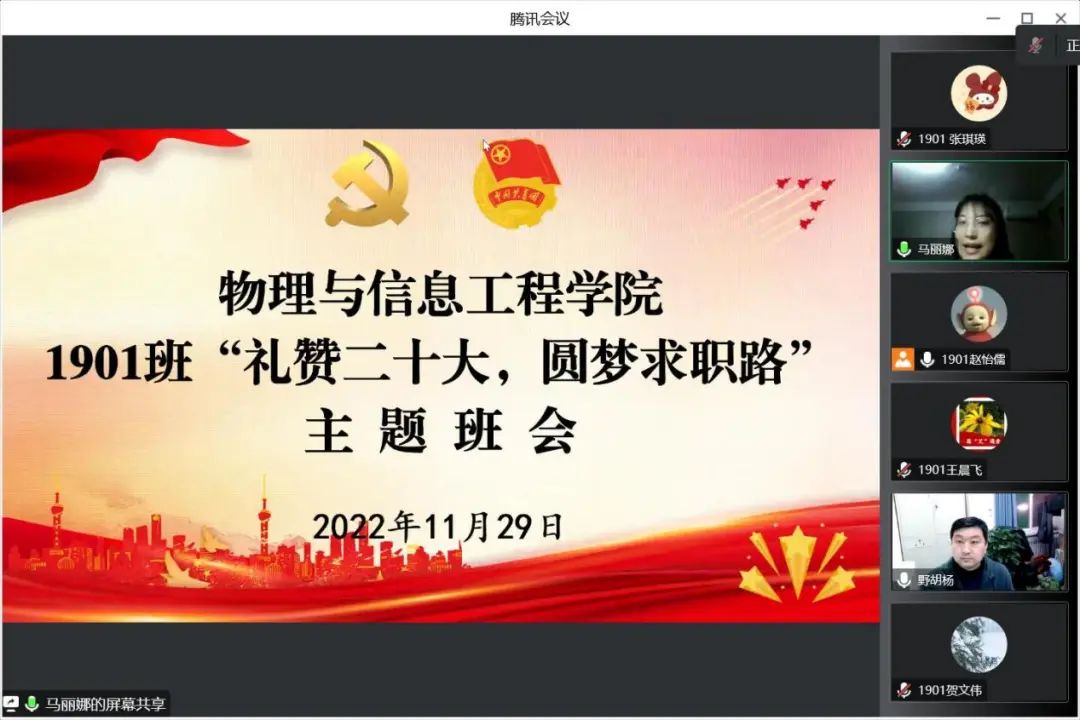 为深入学习贯彻党的二十大精神,帮助同学们形成正确的择业观、就业观。11月29日晚19:00,公司1901班于线上开展了“礼赞二十大,圆梦求职路”主题班会。校员工工作部副部长高兵出席了本次班会。本次班会由辅导员马丽娜主持。