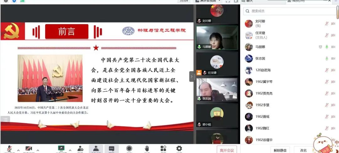 为了鼓励同学们在考研路上坚定信心,全力冲刺,12月1日,公司1902班于线上开展了“一研为定,未来可期”主题班会活动。研究生院副经理张志国老师出席了此次班会。班会由辅导员马丽娜主持。