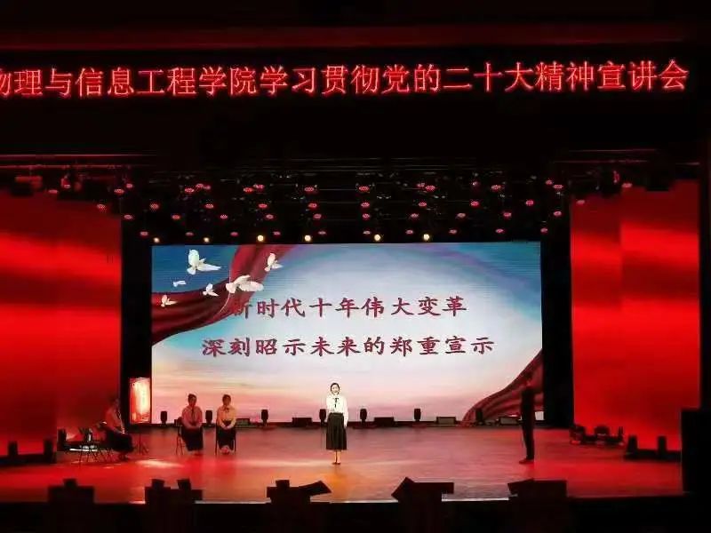 宣讲以“党的二十大精神”为主题,以主题式理论讲解与情景式艺术演绎相结合的方式展开,围绕“高举旗帜,推进伟大复兴”、“伟大实践,中国式现代化”、“青年”三个篇章讲解。通过丰富翔实的数据、生动形象的事例、铿锵有力的话语、激荡人心的舞蹈,讲述了中国共产党如何历经浴血奋斗站起来、砥砺奋进富起来、继往开来强起来。从党的二十大主题和主要成果、过去五年的工作和新时代十年的伟大变革等多个方面作了系统宣讲和深入阐释,用一个个生动的例子阐述共产党人的初心使命、阐述了我们国家在党的领导下发生的变化,引导我们牢固树立听党话、感党恩、跟党走的坚定信念。