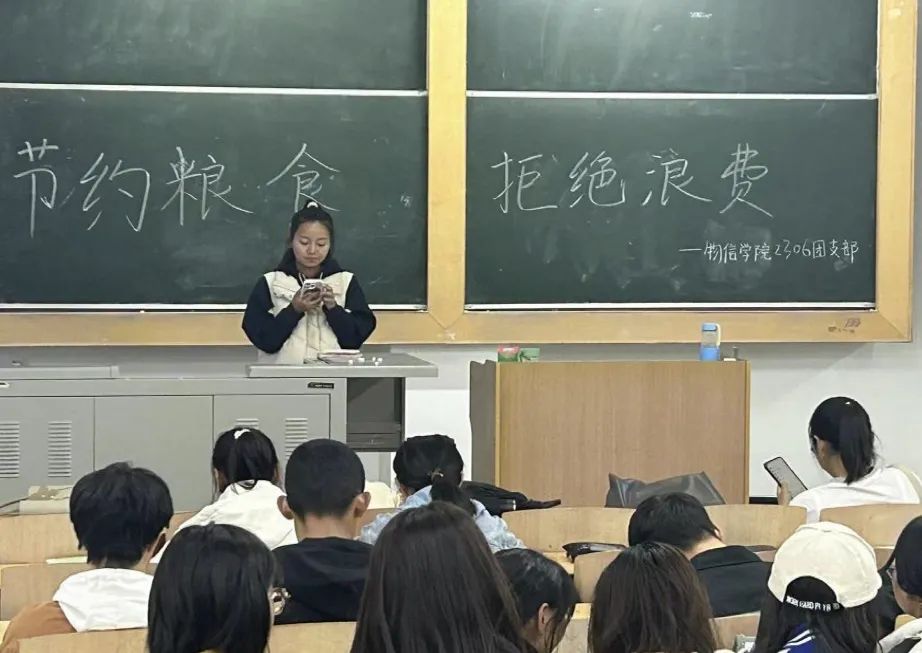为了宣传世界粮食日,进一步培养同学们“珍惜粮食”的良好习惯,体会粮食的来之不易,10月18日,公司2306团支部在南区3107教室开展了“节约粮食,拒绝浪费”主题团日活动。本次团日活动由团支书马紫阳主持。