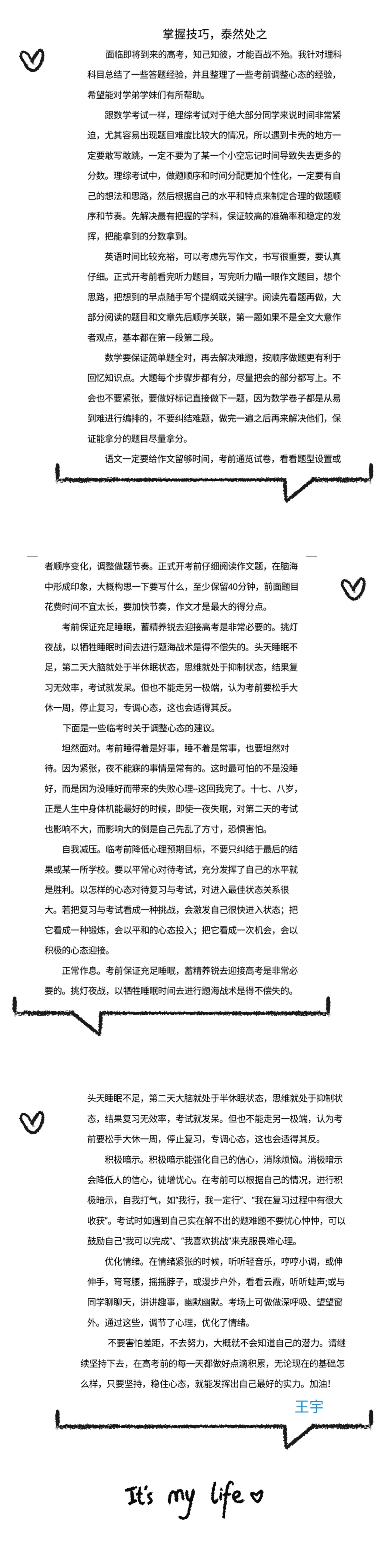 最后,大家还用视频、海报等多种形式表达了对2020届高考考生最真挚的祝福。(文/1901班 张琪瑛 1902班 徐瑾华)
