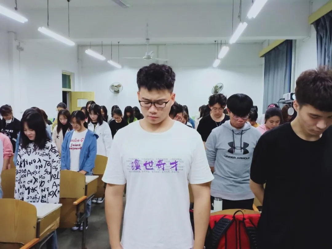 活动伊始,党龙辉同学向大家介绍了烈士纪念日的由来以及我国抗日战争的历史,讲述了许多抗日时期的英雄事迹。随后,同学们对于战争的艰辛和影响积极发表了各自的看法。郭珂钰同学为大家讲解了淞沪会战对中国抗战的影响,并带领大家观看了抗战电影的片段,热血的画面令同学们激情澎湃。历史是残酷的,多少烈士带着不屈的信仰倒在血泊中,是他们用鲜血染红了国旗,用生命换来了和平幸福的今天。最后,1904班全体同学为逝去的英雄们默哀。