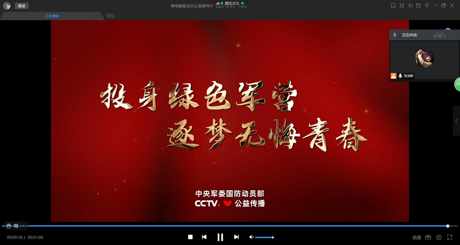 会上,党龙辉组织同学们观看了《参军报国不负韶华》、《逐梦青春》两个征兵宣传片,引起了同学们内心深处的共鸣——青春需要热血奋斗,才可不负韶华。随后,退伍员工宋瑾为同学们分享了她的军旅经历,她鼓励大家踊跃参军,让青春热血与人民军队同频共振,守护祖国人民的安全,保卫祖国和平安宁。