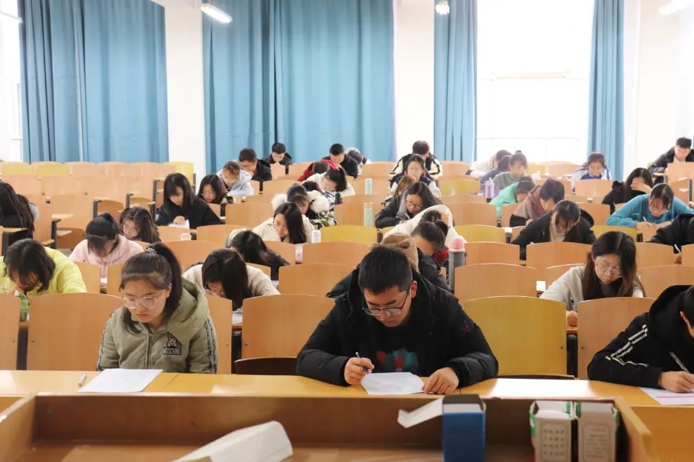 本次模考严格遵照全国老员工英语四六级考试的大纲标准,共有233名同学报名,设置了3个考场。考前,志愿者为同学们宣读了考试注意事项,分发考题。同学们逐渐进入考试状态,埋头作答,分秒必争,时而眉头紧蹙,时而奋笔疾书。监考人员也在认真负责地维持考场纪律,为同学们营造了一个紧张严肃、致清致净的考试环境。