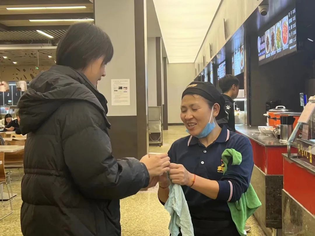活动前期,志愿者们明确分工,提前准备好充足的热茶与祝福卡片,“喝杯热茶吧,您辛苦了”,志愿者们走进食堂、宿舍楼、教学楼、保安室等公共区域,将一杯热腾腾的茶水送给了正在辛勤工作的工作人员,同时赠送的还有写满深深祝愿的爱心卡片。茶水的雾气弥漫在每一位工作人员的笑容中,祝福纸条体现了同学们热情温暖的心,更凸显了师大学子暖心互助的优良品质。