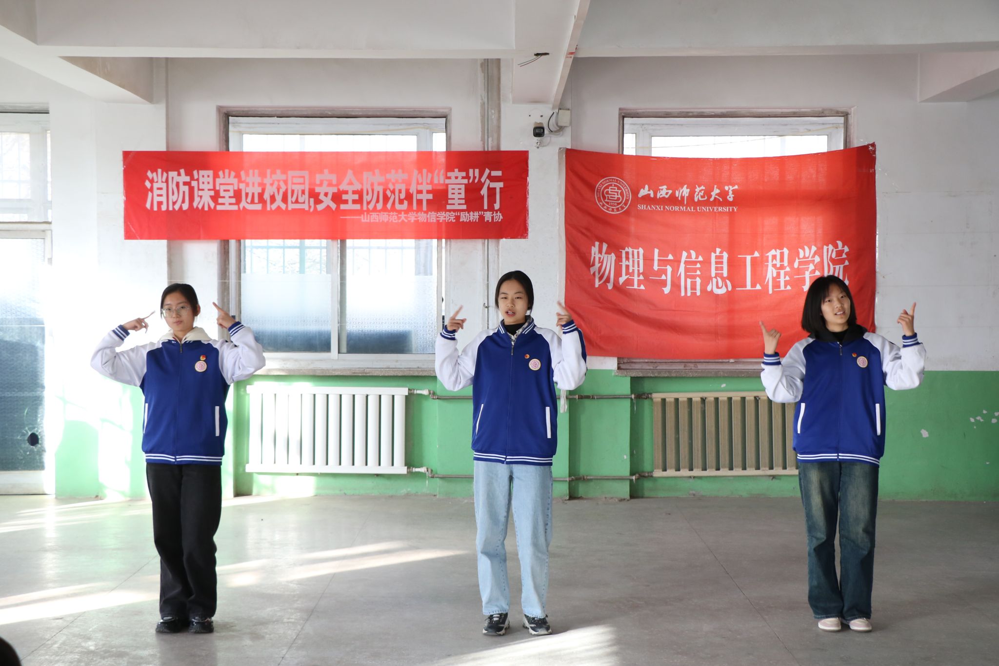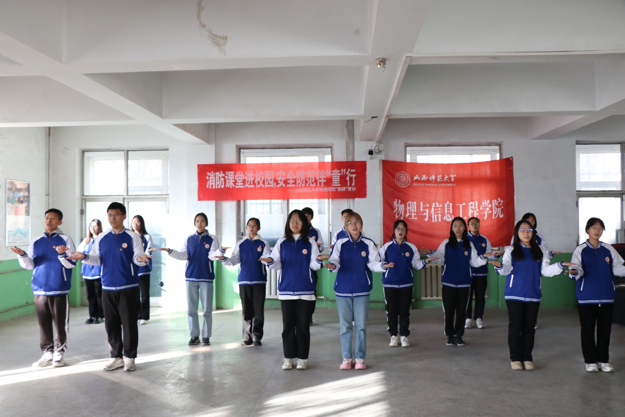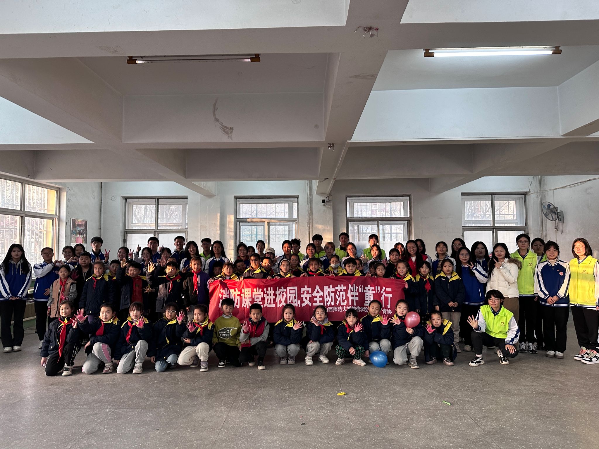 在本次活动中,物信学子们向秋村小学的小员工们讲解了不同灭火器灭火的基本原理,并进行了有关消防小实验,让大家牢记面对不同类型火情应该使用哪种灭火器。此外,志愿者们还准备了与消防有关的情景剧表演、儿歌以及手势舞,将日常的用火安全知识融入有趣新颖的表演中,让同学们在欢乐轻松的氛围中牢记消防知识。活动结束后,同学们依次在消防海报上留下自己的彩色手印,寓学于乐,让消防安全意识深深镌刻在孩子们的心中。