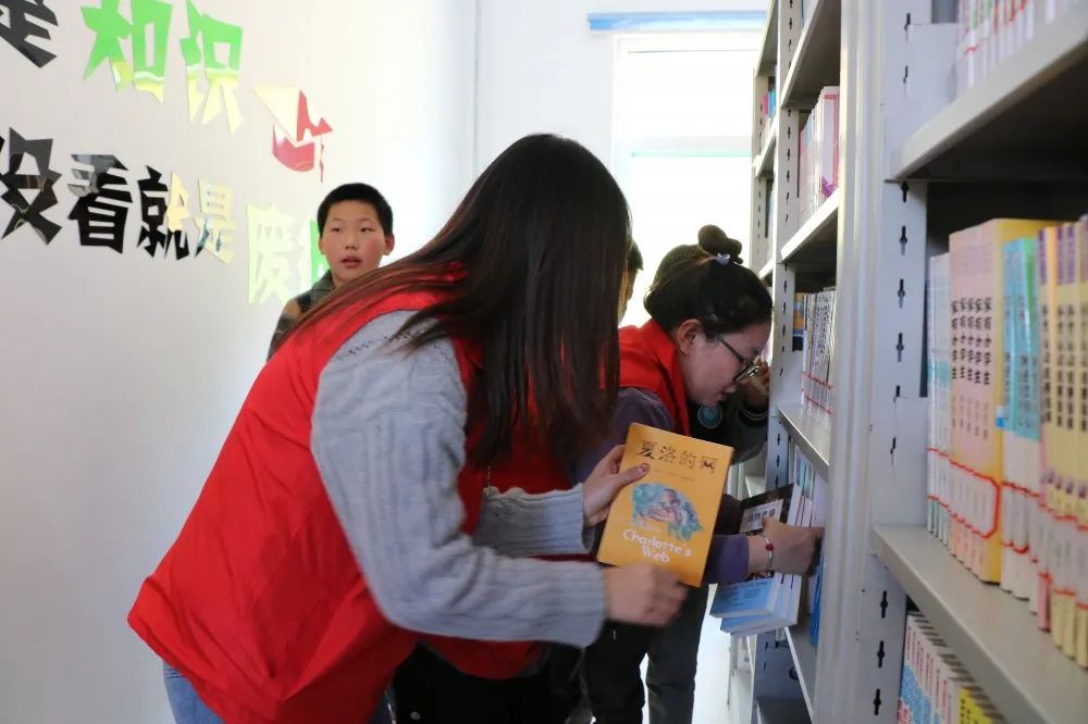 仪式结束后,236爱心社志愿者们将捐赠图书送于“梦想书屋”,带领公司孩子们一起整理图书,将图书分类上架。(文/刘丽 摄/张睿睿)