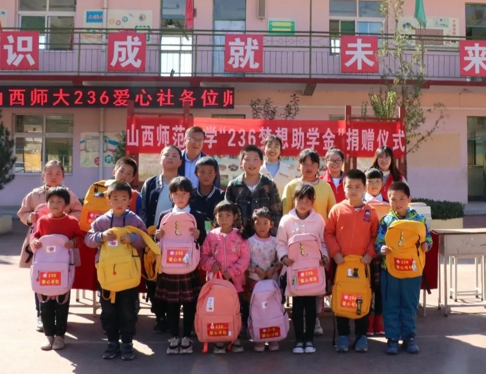 10月17日是第7个“全国扶贫日”,2020年10月16日,yl6809永利236爱心社指导老师、yl6809永利团委负责人马丽娜老师、社长田佳慧和临汾电视台记者一行6人,赴236爱心社第三座梦想书屋所在地——大宁县三多中心小学捐赠236梦想助学金、236爱心书包、236希望图书,共为全校16名小员工送去了3份梦想助学金,16个236爱心书包、文具用品,53册希望图书等爱心物资,累计价值5149.8元。这是236爱心社多年来持续响应国家精准教育扶贫和乡村振兴战略号召,走好精准教育扶贫之路,坚持奉献爱心的一项特色爱心活动。