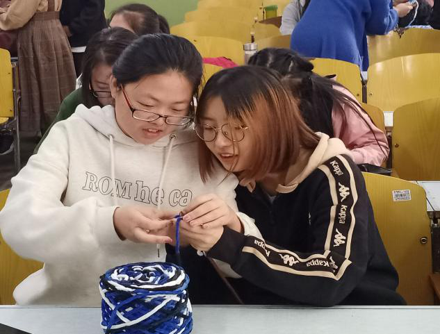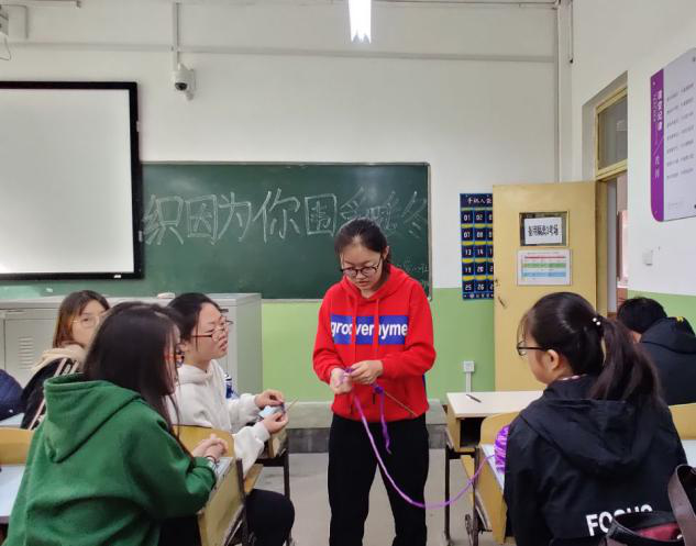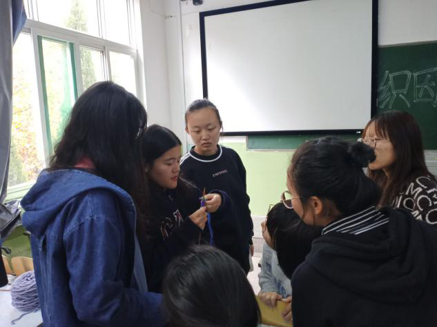 本次活动以“为贫困地区的孩子编织围巾”为主要内容,报名当天就受到了来自不同公司的众多富有爱心的同学关注。活动中,社团组织者将参与人员进行分组,每组选出2名有编织技术基础的同学担任组长,并对组长进行集中培训。活动中期,各组组长在小组内开展了编织围巾的教学活动,大家相互交流、共同学习,用灵活变换的一针一线编织出一条条浸透着关爱和温暖的五彩围巾。