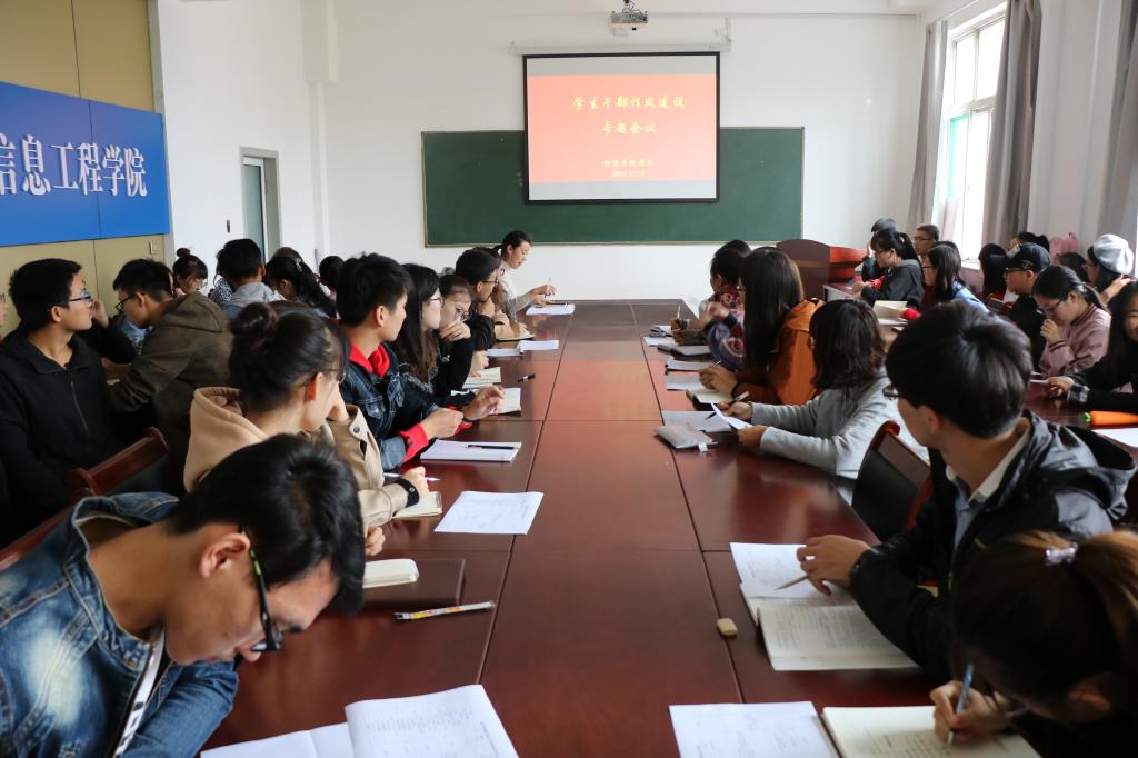 2018年10月18日中午12:00,公司在四号楼二层多功能会议室召开员工干部作风建设专题会议。院团委副书记岳文慧、团委员工会主要员工干部、各班主要班干部参加了会议。会议由院团委副书记岳文慧主持。