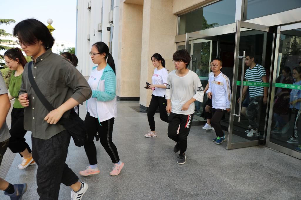 讲座结束后,公司党委副书记王玮和专职辅导员马丽娜在校保卫处的配合指导下组织大一至大三年级的部分班级进行了应急疏散和灭火演练。随着警报声响起,分布在四号教学楼教室和实验室的同学们迅速组织撤离,按照事先学习的疏散要求,快速有序地前往巨人广场安全集合区域,清点人数,整个过程井然有序。两次演练后,公司党委副书记王玮结合演练过程进行了点评,强调同学们面对突发情况要沉着冷静应对,以确保人身安全为第一位,党员、员工干部要在危急时刻保持冷静头脑、保持先进本色,肩负责任、指挥到位!在灭火演练中,保卫处消防科张科长向员工们进行了消防知识现场教学,详细讲解了不同类型灭火器的使用方法,并现场进行演示,还邀请了部分同学进行了灭火体验。