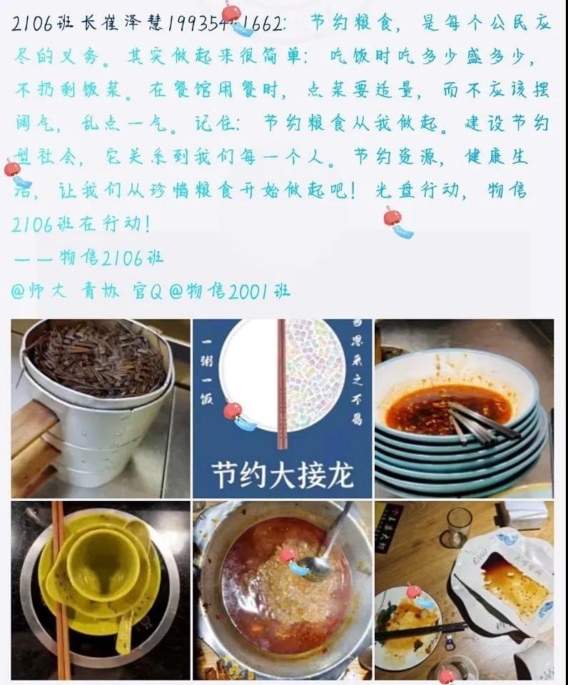 “励耕”青协开展“节约大接龙光盘行动拍照打卡”活动