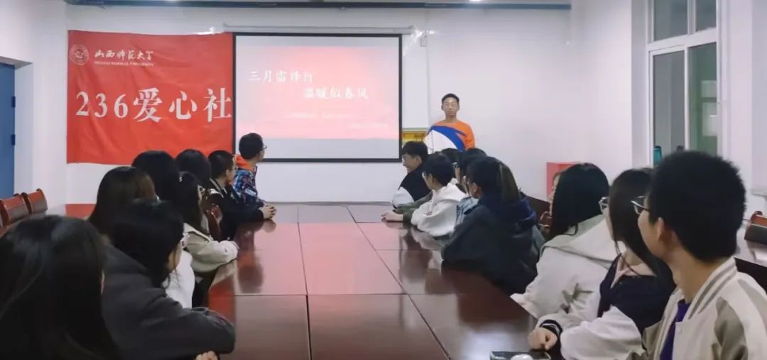 为弘扬雷锋精神,使雷锋精神贯彻到同学们日常生活中去,236爱心社于3月21日晚20:30在实验楼S202开展了“三月雷锋行,温暖似春风”主题团日活动,全体2021级负责人参加了本次活动。活动由236爱心社办公室负责人张泽华主持。