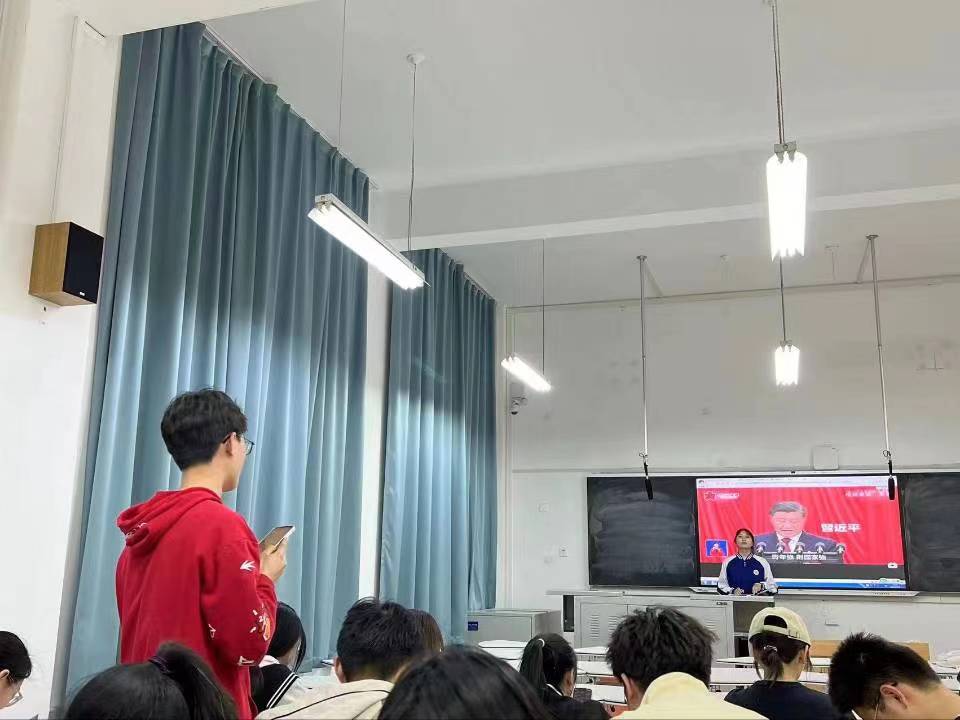 活动中,李婉洁带领同学们重温入团誓词,了解五四青年节的由来和意义,带领同学们深入学习五四精神。她还向同学们介绍了五四精神的内涵以及五四运动背景下爱国青年的先进事例,进一步激发了同学们的责任感和归属感,产生强烈共鸣。交流讨论环节,同学们就“如何向优秀青年学习”发表了自己的观点,表示通过参加此次活动,深刻明白了青年的责任与担当,懂得了要继承和发扬“五四精神”,就要勇担时代使命,奉献国家、奉献人民。
