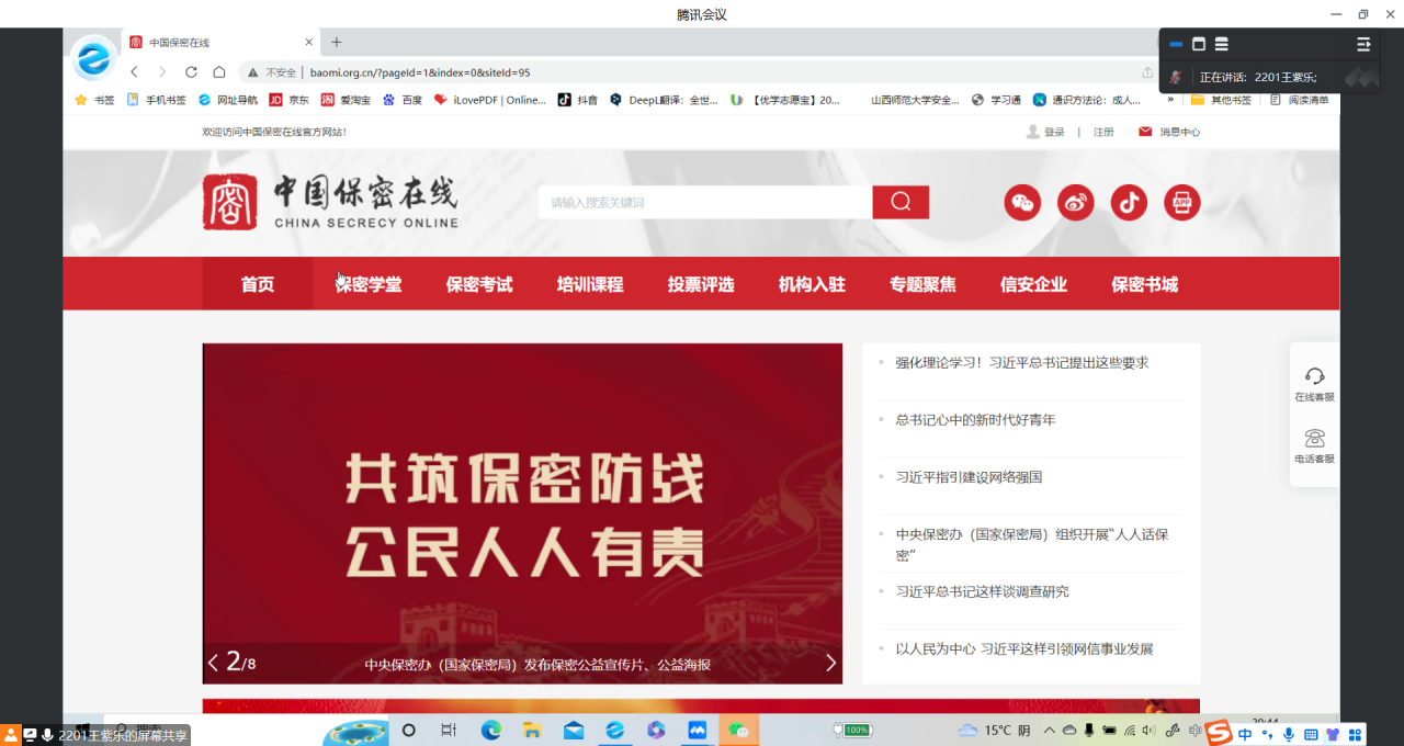 为贯彻落实国家保密局、教育部、共青团中央的《关于组织开展全省高效“保密宣传教育高校行”活动的通知》精神,增强员工的保密意识,院团委办公室在5月9日晚线上开展了保密活动培训。公司全体班长及团支书参加了此次培训,活动由2201班团支书王紫乐主持。
