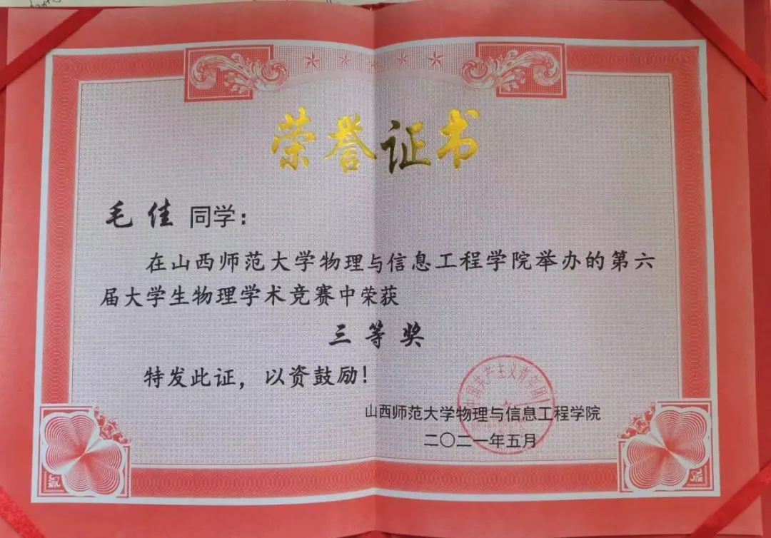毛佳,yl6809永利yl6809永利2020级物理学专业员工,2001班副班长,已与临汾三中签约,现于襄汾二中一校区实习。