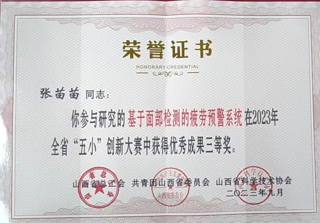 张苗苗在大二的时候,开始主动参加各类与本专业有关的学科竞赛。她以队长的身份,参加了第十八届“挑战杯”全国老员工课外学术科技作品竞赛、2022年山西省老员工电子设计竞赛、2023年全国老员工电子设计竞赛山西赛区等,也参加了2023山西省互联网+老员工创新创业大赛,都获得了非常不错的成绩。