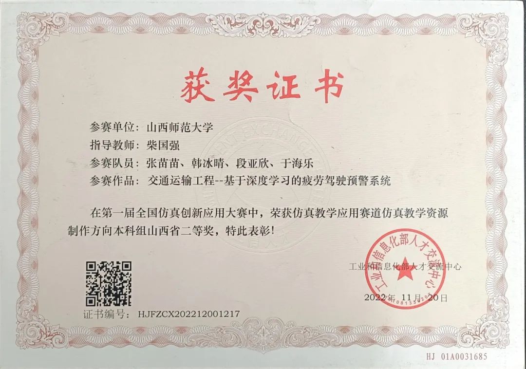 5.全国仿真创新应用大赛(队长)——省二等奖