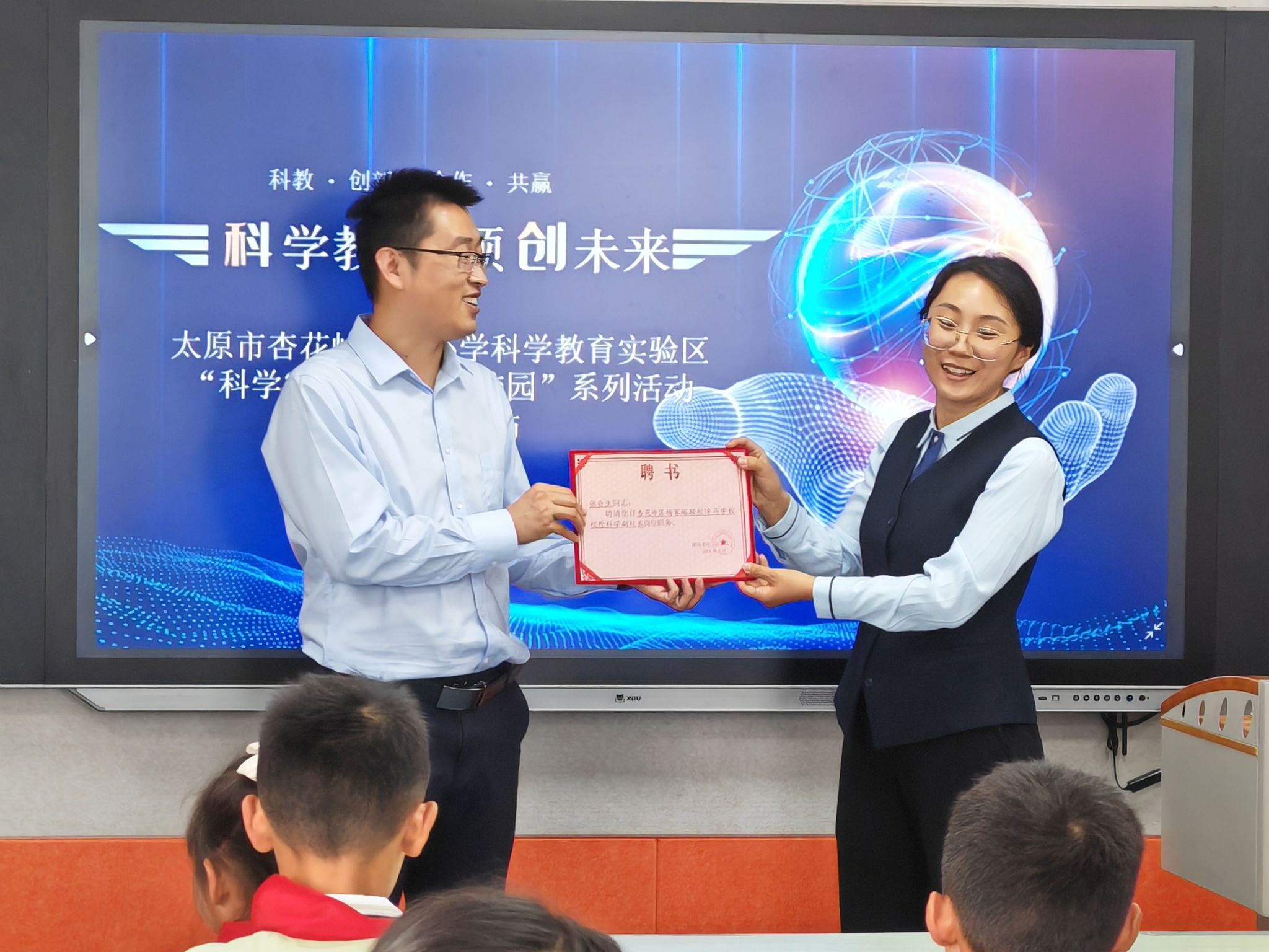 活动现场,张会生老师以生动的语言和丰富的实例,向员工们介绍物理与化学的现象及原理,让员工们了解科学的奥秘。随后,向孩子们展示了变色的液体,隐形的瓶盖,消失的字,折断的筷子等趣味科普实验,并引导孩子们亲自动手操作实验,在实操过程中带领孩子们进一步领悟蕴含在其中的实验原理和科学知识。互动环节,员工们积极交流互动,表现出对科学知识的浓厚兴趣。张老师还鼓励员工们勇于探索、敢于创新,追求科学真理。活动现场,两所公司均聘请张会生老师担任校外科技副董事长。