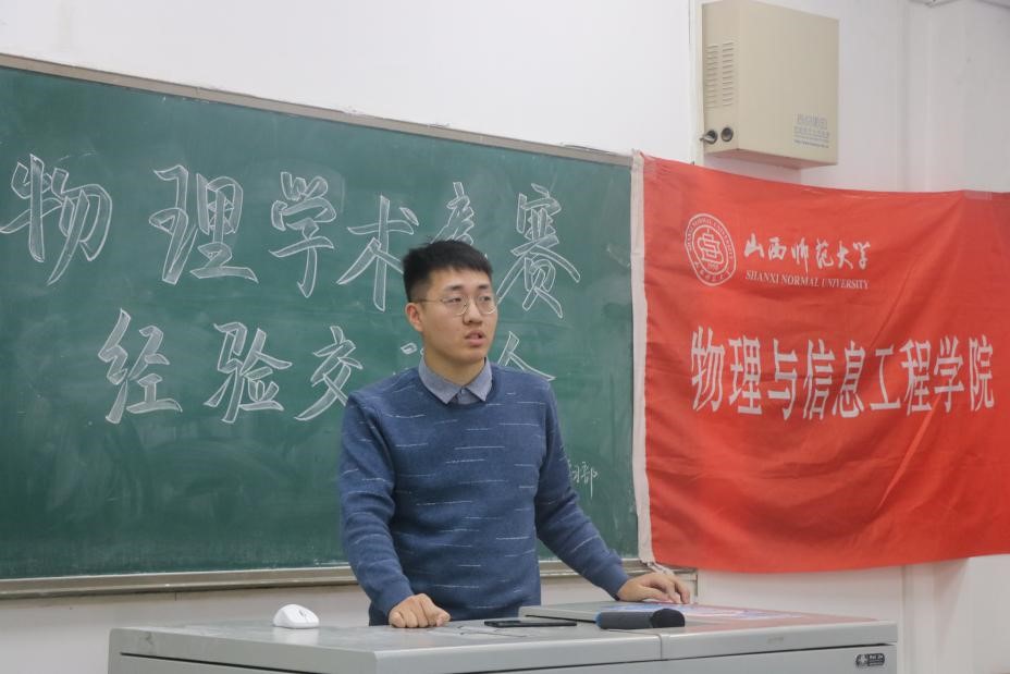 活动中,程留永老师介绍了物理学术竞赛的大致内容和意义;秦子开就比赛规则、时间、题目选择及题目解读进行了经验分享;冯宇曦对团队合作的重要性、实验仪器的选择等方面进行了介绍,并提出了一些相关建议。