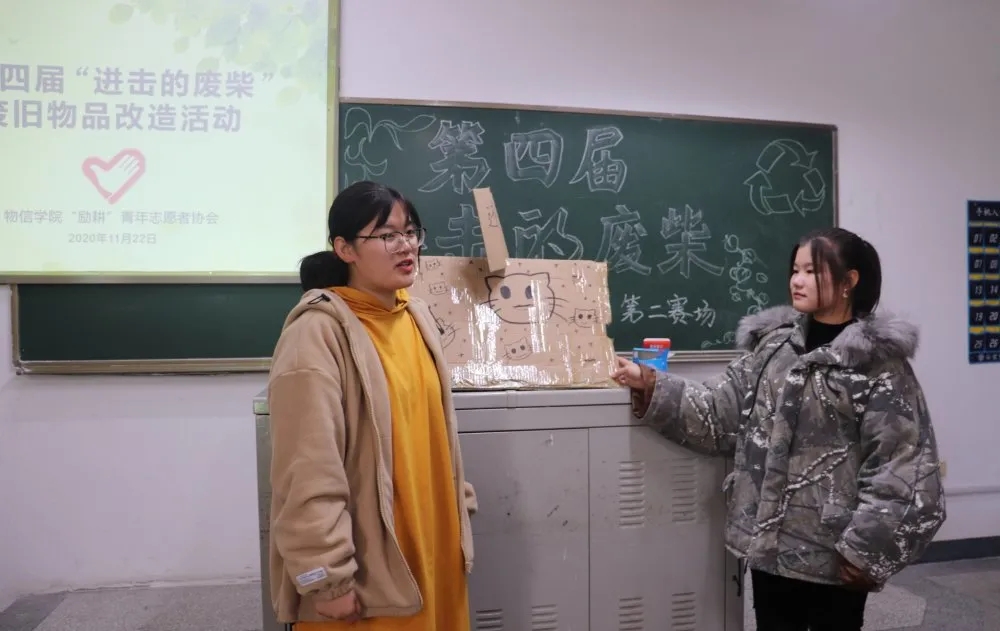 为增强同学们节约资源的环保意识,充分发挥创新性思维、提高动手能力, 11月22日,公司励耕青协在07219、07301教室举办了第四届“进击的废柴”废旧物品改造展示评选活动。