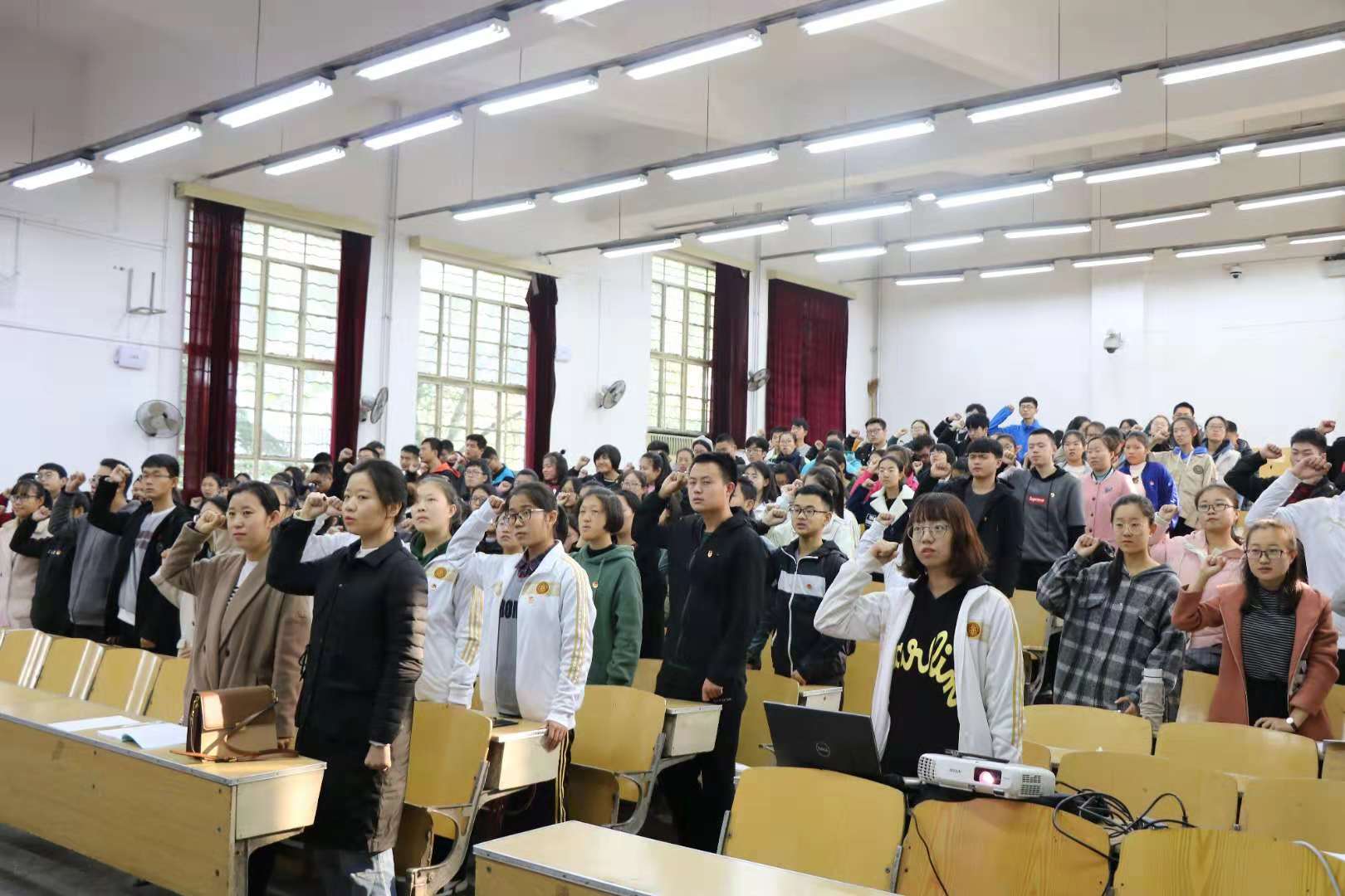 为坚定新生理想信念,增长党团知识,公司于为坚定新生理想信念,促进新生自我成长,公司团委于2018年11月11日上午9:00在05103教室开展了以“重温团的光辉,坚定理想信念”为主题的新生入团再教育之理想信念教育活动。院团委副书记岳文慧、院团委员工干部、大一所有团员参加了此次活动。活动由院团委组织委员高卓瑶同学主持。